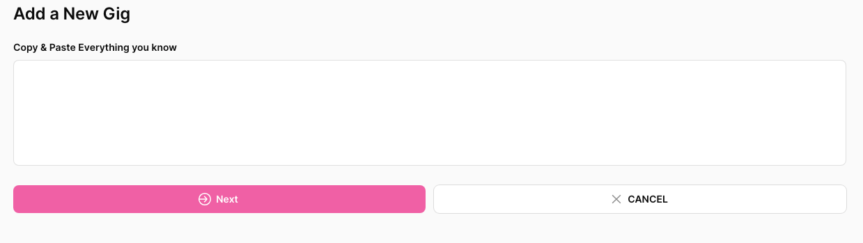 - Copy and paste (or type) all the information you have about the new gig into the white box. The more detailed the information, the better.